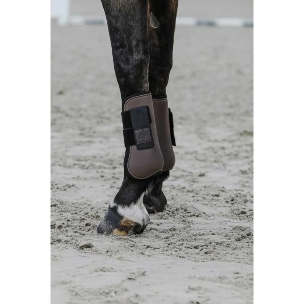 EQUITHEME Senebeskyttere er fremstillet med fokus på både beskyttelse og komfort. Den robuste ydre skal fungerer som et skjold mod stød og slag, mens den omhyggeligt formede form sikrer en perfekt pasform, der bevæger sig med din hest og forhindrer uønskede trykpunkter og gnidning.