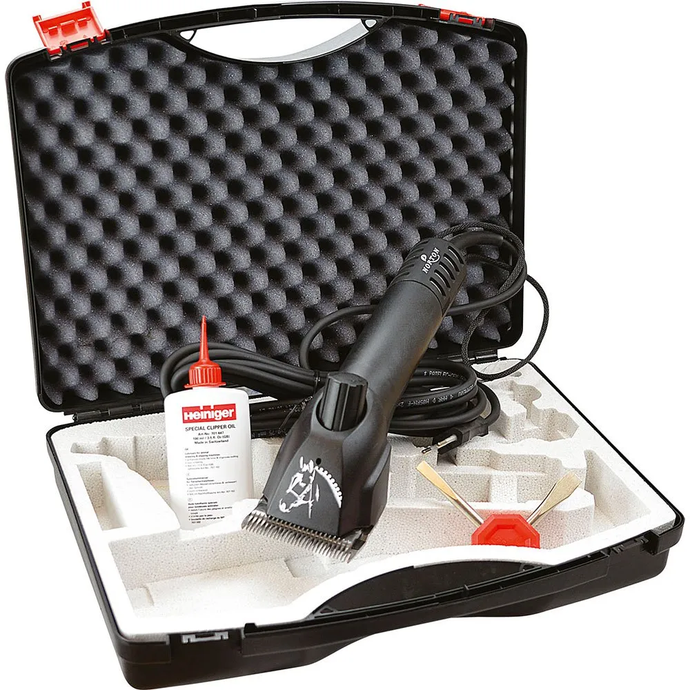 Disse moderne design-hesteklippere er ekstremt nemme at bruge med deres slanke greb, vejer mindre end 1 kilo og har et 13° vippet klippehoved for at reducere træthed under kropsklipning og hjælpe med at nå følsomme dele. Clippers' kraftige motor med permanente magneter producerer betydeligt mere moment end en konventionel motor med kulbørster, har altid masser af reservekraft til hårdere områder, og dette uden generende luftudstødninger. Uden tvivl en af de mest støjsvage klippere på markedet, hvilket gør klipning af heste meget mere behagelig. Der kræves ingen værktøj for at fjerne luftfilteret, så rengøringen er meget enkel. Norton "Progress"-klipperne har knivsæt i samme størrelse som større knive og er også kompatible med mange andre mærker af knivsæt.