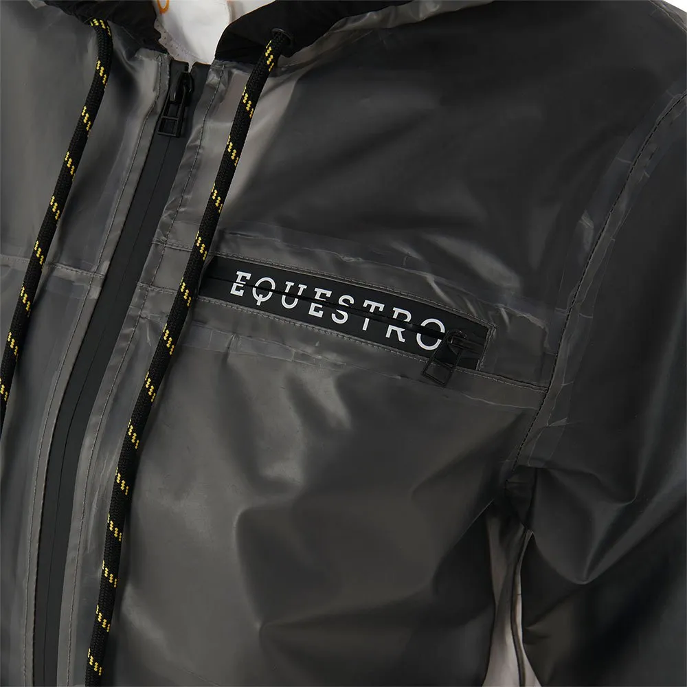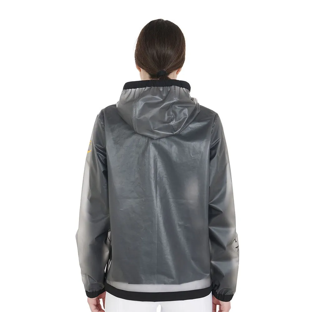 Damen-Regenmantel aus transparentem, winddichtem und wasserabweisendem Spezialgewebe, das maximalen Schutz vor Wasser und hervorragende Bewegungsfreiheit garantiert.