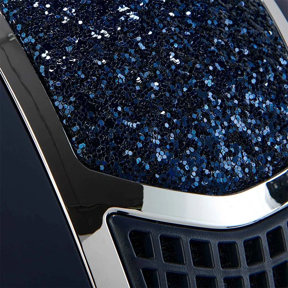Die Außenschale ist undurchsichtig und wird durch die Anwendung von tonangleichenden Strasssteinen verziert, die den Helm raffiniert und elegant machen, mit Fronteinlässen und Platte mit dem Equestro-Logo.
