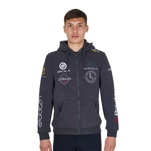 Veredeln Sie Ihren Reit- und Alltagsstil mit dem EQUESTRO Multilogo Hoodie. Sorgfältig gefertigt aus unglaublich weicher, atmungsaktiver Baumwolle, bietet dieses hochwertige Herren-Sweatshirt unvergleichlichen Komfort und Bewegungsfreiheit. Sein vielseitiges Design umfasst einen praktischen durchgehenden Reißverschluss zum einfachen Kombinieren, praktische Seitentaschen und eine integrierte Kapuze für zusätzliche Wärme. Elastische Bündchen und ein passender Bund sorgen für einen sicheren, figurbetonten Sitz. Abgerundet durch ein markantes Multi-Logo-Design, vereint dieser Hoodie perfekt anspruchsvolles Reitsport-Erbe mit modernem, funktionalem Nutzen