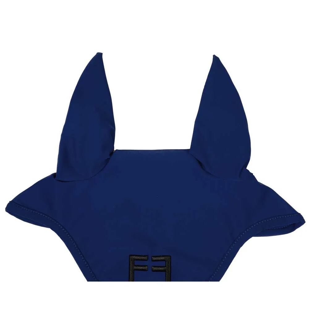 Fliegenschutzhaube aus atmungsaktivem und dehnbarem Funktionsmaterial für eine perfekte Passform. Verziert mit Ton-in-Ton-Besatz mit Equestro-Schriftzug und Frontlogo.