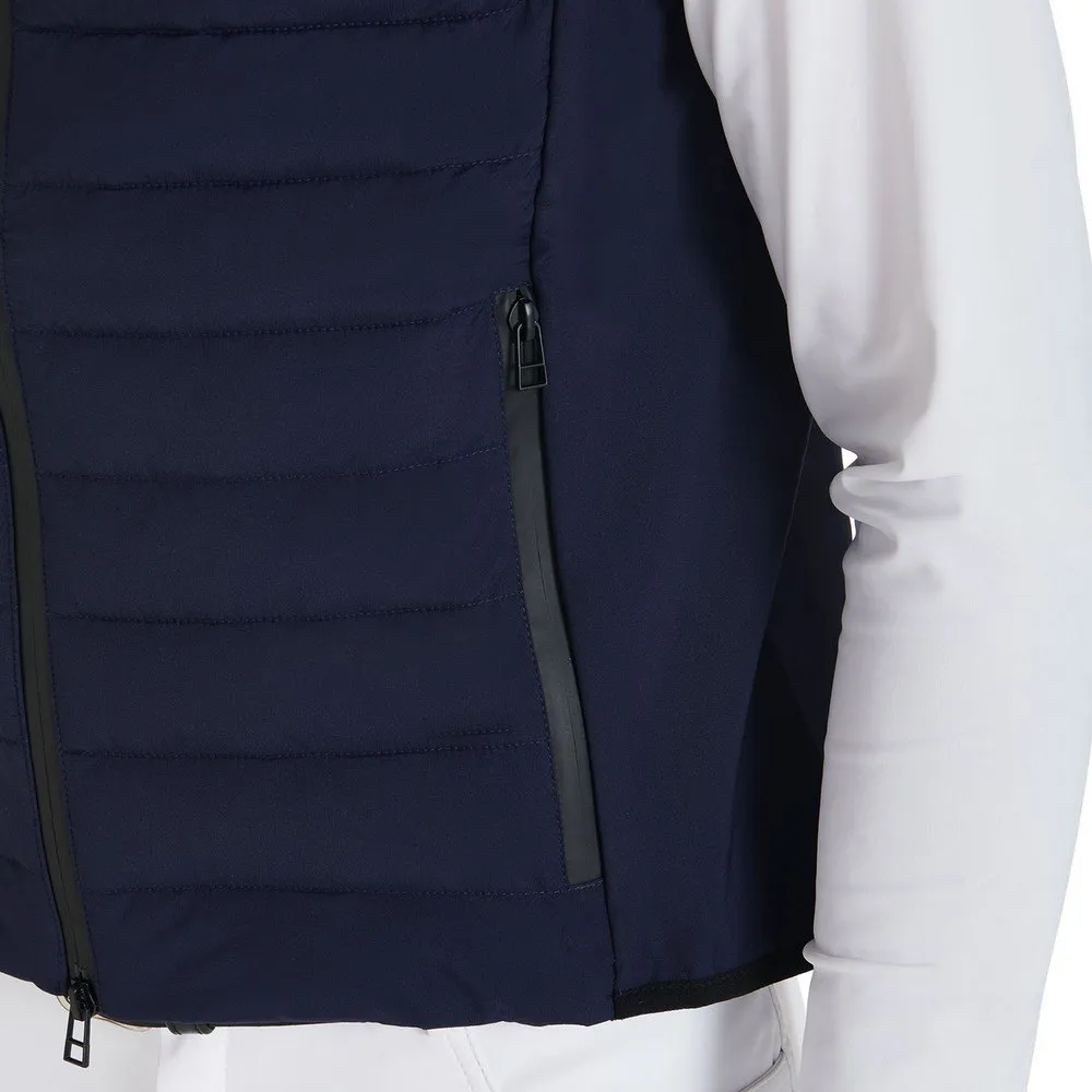 Das Kleidungsstück ist sorgfältig verarbeitet und mit einem Reißverschluss mit Windschutzsystem, zwei Seitentaschen und Equestro-Schriftzug auf der linken Brustseite verziert.