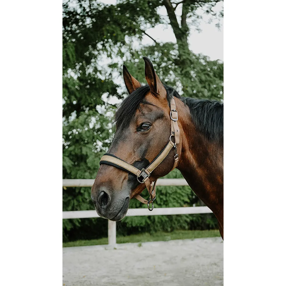 Was dieses Halfter wirklich auszeichnet, ist sein einzigartiges ´Glowy´-Finish. Das Hauptmaterial besitzt einen subtilen, auffälligen Schimmer, der das Licht wunderschön einfängt und Ihrem Pferd ein distinguiertes und gepflegtes Aussehen verleiht, ohne dabei übermäßig auffällig zu sein. Es ist ein eleganter Glanz, der der Garderobe Ihres Pferdes einen Hauch von Klasse verleiht und sicherstellt, dass Sie beide in jeder Umgebung mit dezenter Eleganz hervorstechen Das EQUITHEME Glowy Nylonhalfter ist mehr als nur ein Ausrüstungsgegenstand; es ist ein Statement für Qualität und Stil, das keine Kompromisse bei der Praktikabilität eingeht. Es bietet die perfekte Kombination aus robuster Konstruktion, unvergleichlichem Komfort durch strategische Polsterung und einer makellosen Passform dank seiner zahlreichen Verstellmöglichkeiten. Wählen Sie das Glowy Halfter, um Ihrem Pferd den ultimativen Alltags-Luxus und zuverlässige Leistung zu bieten
