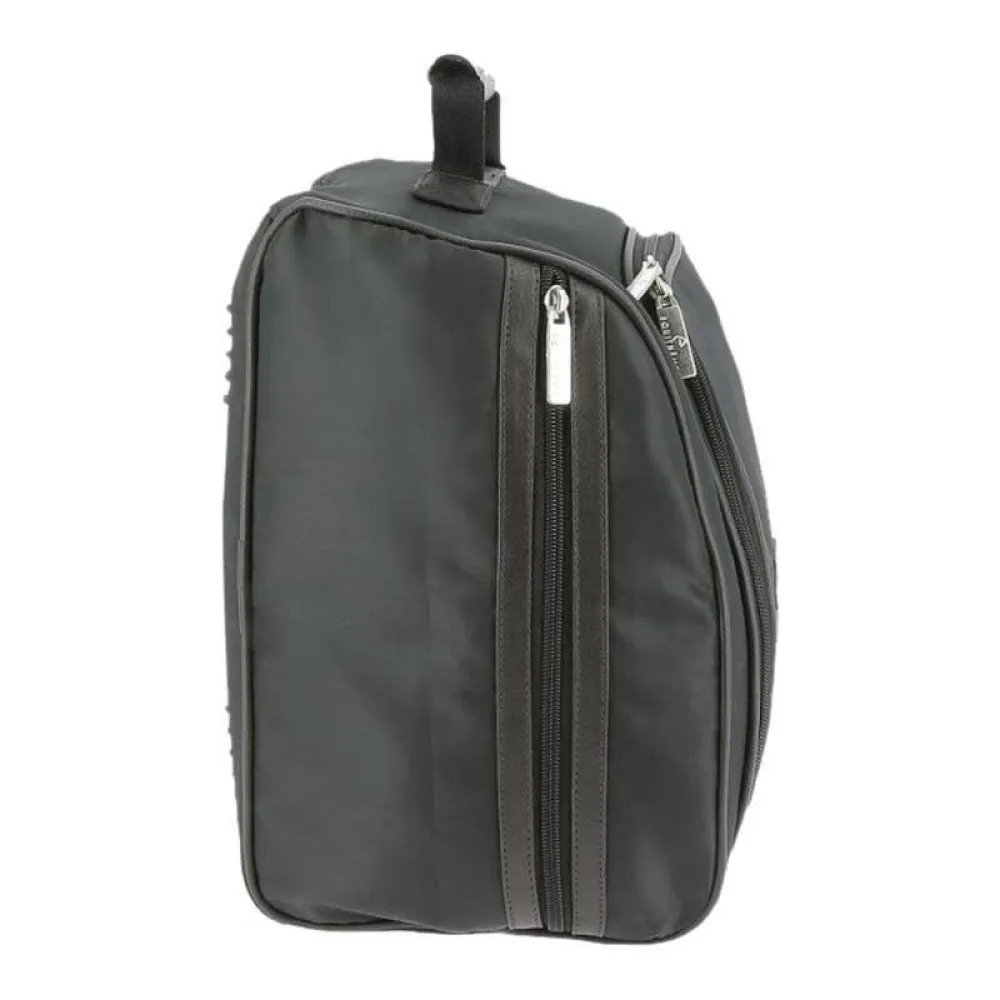 Aus glänzendem 600D-Polyester. Kunstpelz-Innenseite, 2-Wege-Reißverschluss auf der Vorderseite und eine Seitentasche. Kunststoffgriff für einfaches Tragen. Futter aus 100 % Baumwolle. Schutznoppen und Verstärkungsplatte auf der Unterseite.
