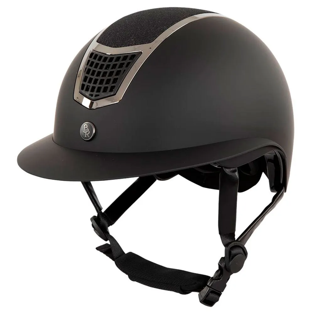 The BR riding helmet Lambda Plus stands out for its sleek design with a striking glitter top, the handy ventilation holes and the large visor.