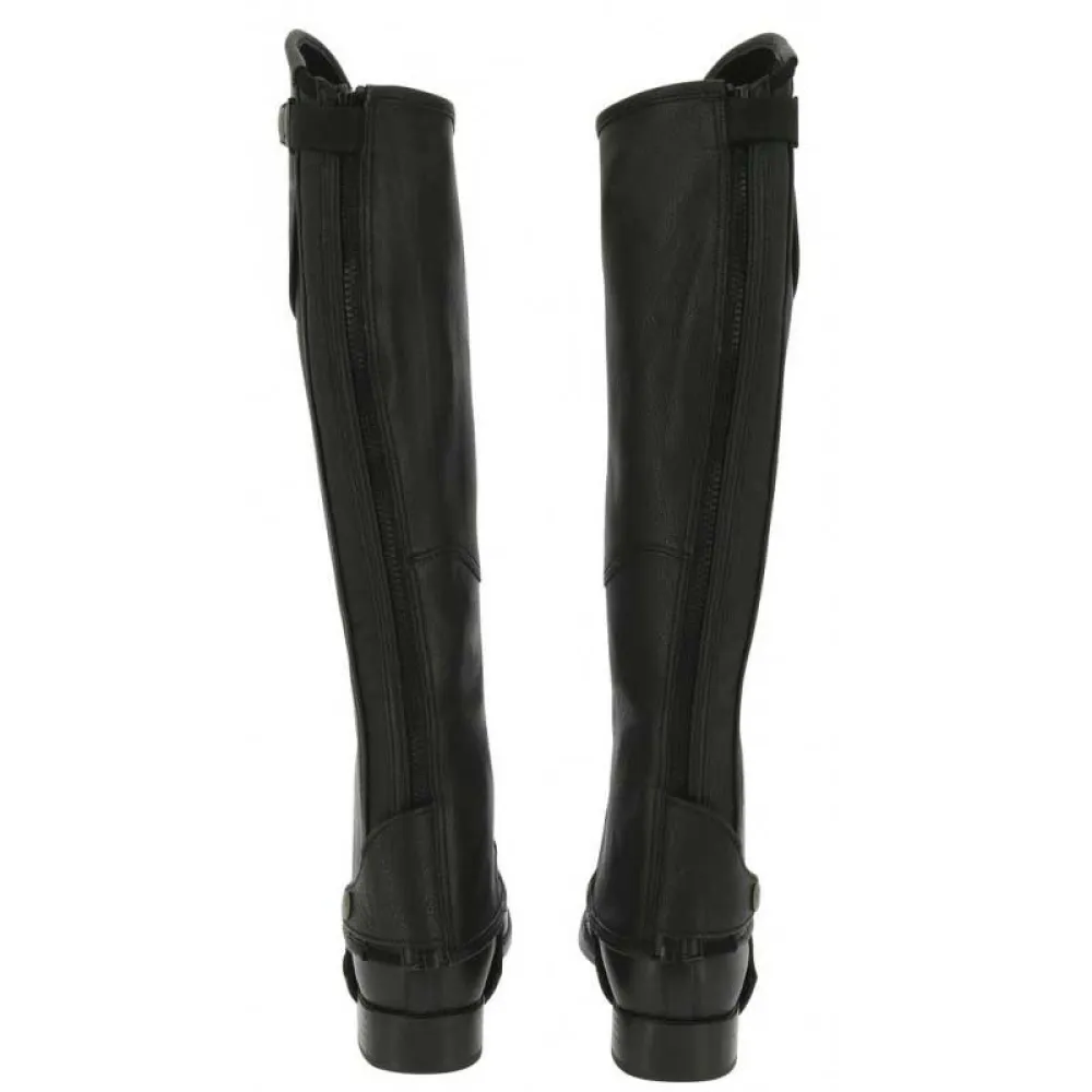 In full grain supple and finely grained cow leather. With rear YKK zip set on elasticated leather base, secured with a press button on a leather tab at ankle and an elastic strap on top. The ideal combination for a perfect fit around your calves and optimum comfort. Elasticated foot straps with leather reinforcements.