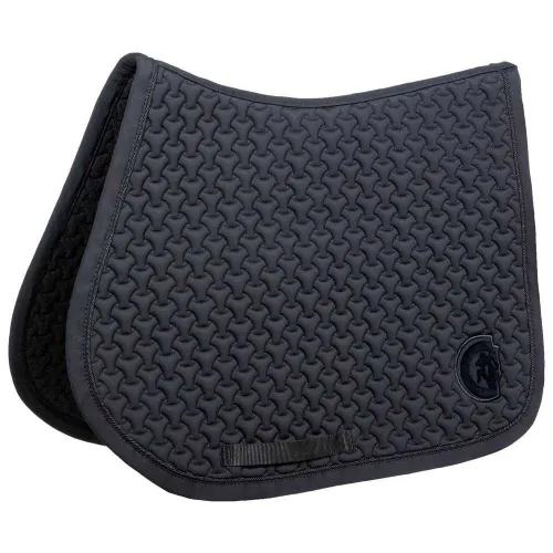 - The Saddle Pad Plaited 3D Logo is anatomically shaped and makes sure the withers are free, to avoid pressure and friction. It has no annoying straps to attach to the saddle, only a nylon strap for the girth. Because of the anatomical shape and soft lining, the saddle will not move whilst riding. This saddle pad is available in Dressage and Show Jumping shape.