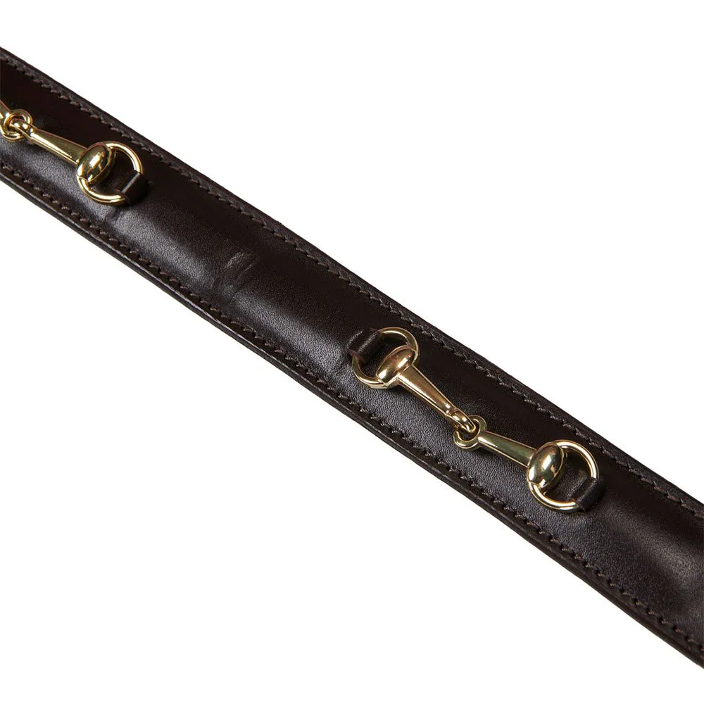 Decorado con aplicaciones de bocados a lo largo de todo el cinturón.