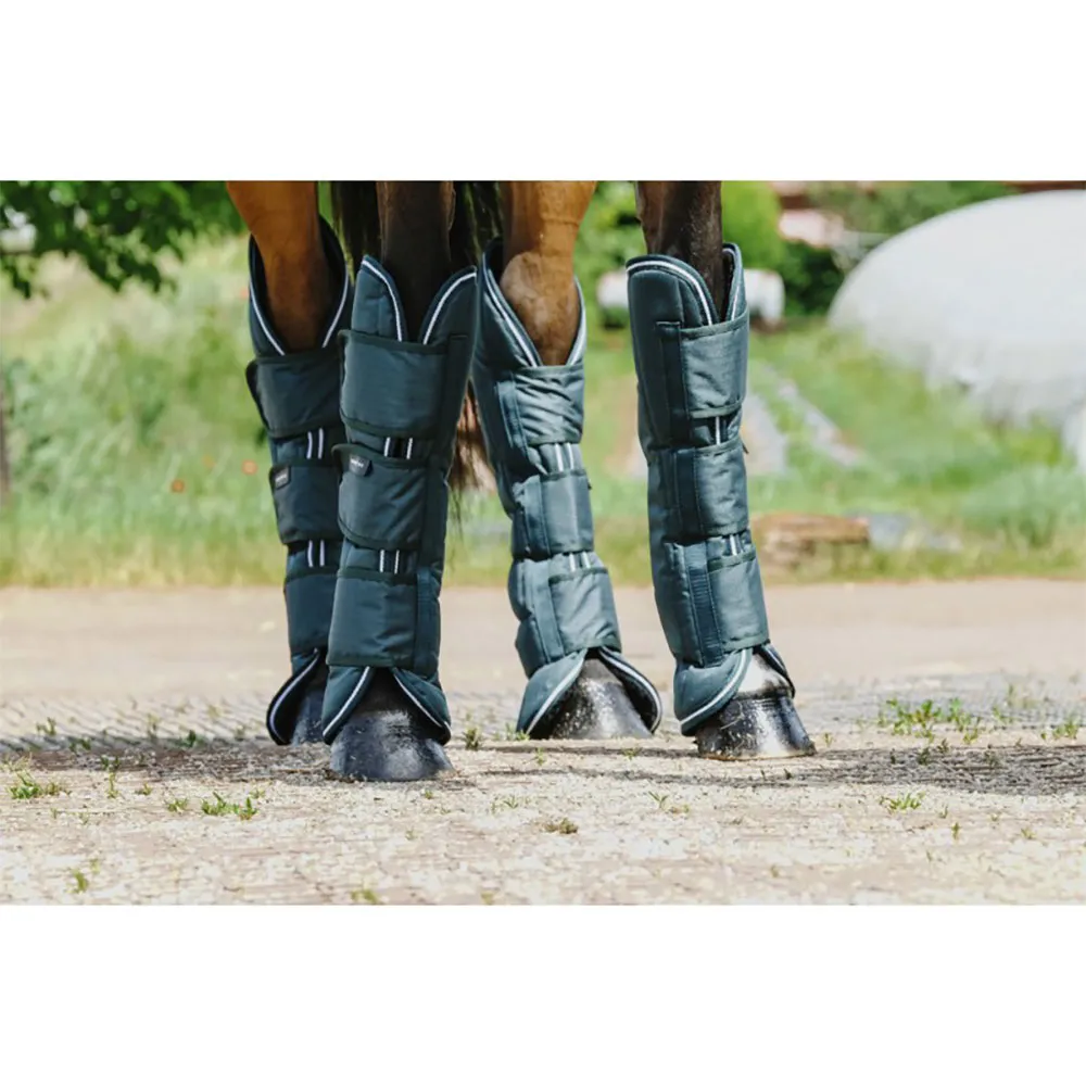 Garantice que su caballo viaje con la máxima seguridad con las botas de transporte para tendones EQUITHEME 600D. Diseñadas meticulosamente para el transporte, estas botas ofrecen una protección inquebrantable para los delicados tendones y ligamentos contra golpes y contusiones. La construcción duradera de 600D resiste los rigores del viaje, mientras que el diseño de forma anatómica y los materiales transpirables minimizan el estrés y aseguran un ajuste cómodo. Con un sistema de cierre seguro para una fácil aplicación, son una inversión esencial para cualquier propietario que priorice el bienestar de su caballo durante el transporte
