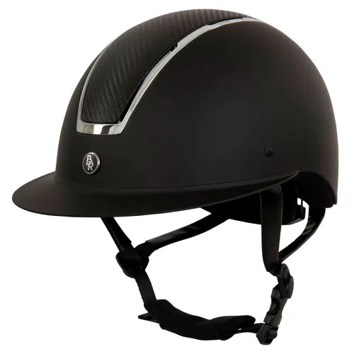 Le casque d´équitation BR Omega Microfiber Painted se distingue par sa grande visière pare-soleil et son dessus en carbone qui confèrent au casque un look sobre et épuré.