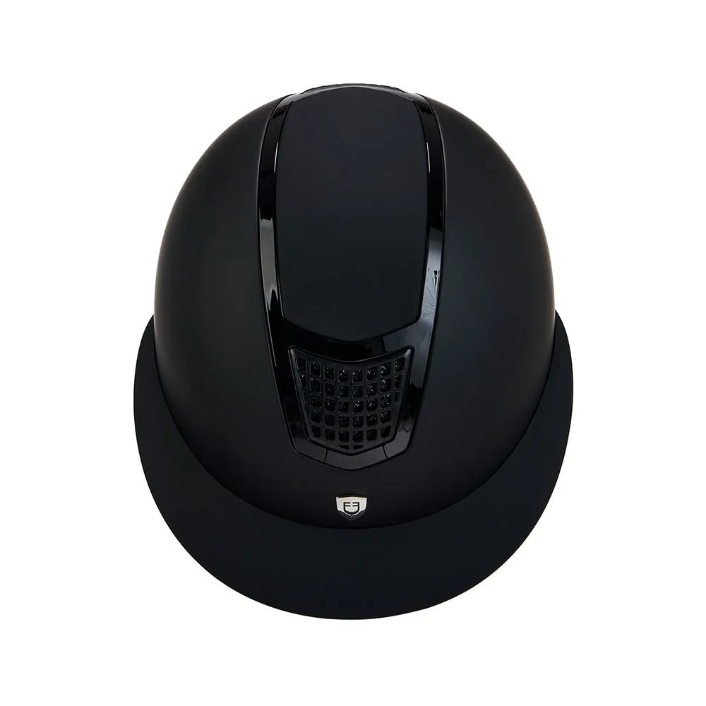 La coque extérieure est en velours avec des entrées d´air avant décorées d´applications de strass, des profils brillants et une plaque avec le logo Equestro pour un design extrêmement raffiné.