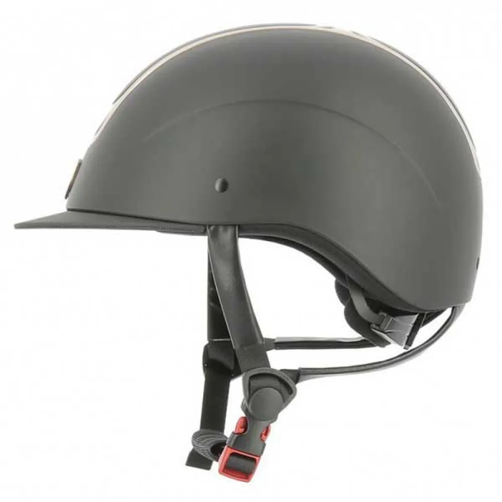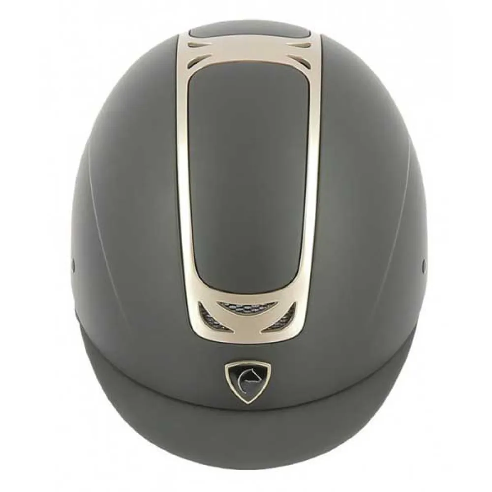 Casque mat, tour d'insert de couleur métallique, ventilation frontale et système de fixation latéral enduit. Casque ABS, très résistant aux chocs même à des températures extrêmes. La coque intérieure en EPS haute densité (polystyrène expansé) est très légère et possède d'excellentes propriétés d'absorption des chocs. Des centaines de demi-cercles incrustés sur la surface de la coque extérieure aident à absorber les chocs, mais combinés aux bouches d'aération avant, arrière et centrale, ils augmentent également la quantité d'air circulant dans le casque. La doublure intérieure textile amovible et lavable absorbe l'humidité. Mentonnière en microfibre avec protège-menton, clip à dégagement rapide et attache arrière à 4 points pour suivre l'encolure. Visière souple. Poids : entre 430 et 530g. Le casque est marqué CE, certifié CE VG1 01.040 2014-12 selon la réglementation 2016/425/UE.