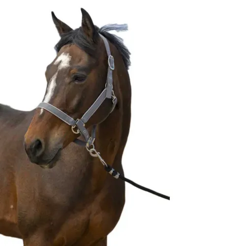 La couleur grise du licol ajoute une touche de sophistication à l´apparence de votre cheval, ce qui le rend adapté aux occasions décontractées et formelles. Il est également doté de ferrures en acier inoxydable qui non seulement ajoutent à la durabilité du produit, mais offrent également un aspect élégant et poli.