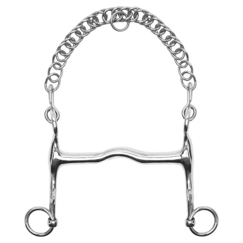 Mors de bride classique avec un port doux||||Acier inoxydable||||Gourmette incluse||||À associer à un mors de filet pour une bride complète de dressage.