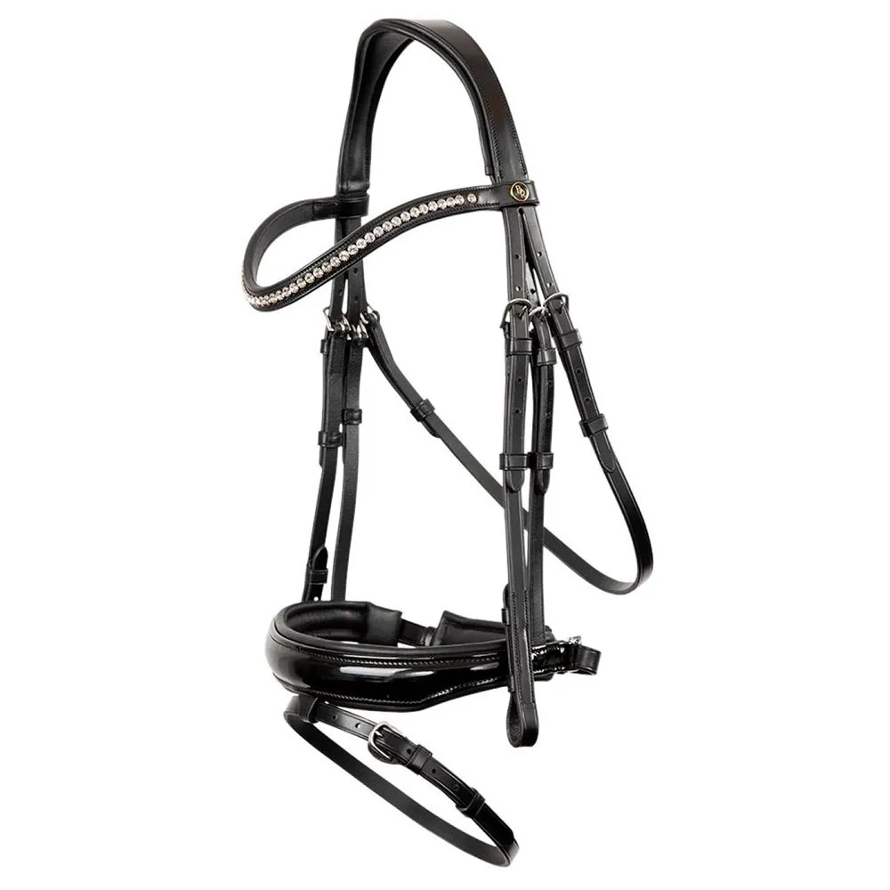 Stai cercando una briglia ben aderente con dettagli lucidi? Allora la briglia BR Ipswitch è una buona scelta! Questa briglia con nasello a manovella in vernice e finti diamanti sul frontalino è realizzata in pelle di buona qualità che si adatta perfettamente alla testa del cavallo ed è resistente.