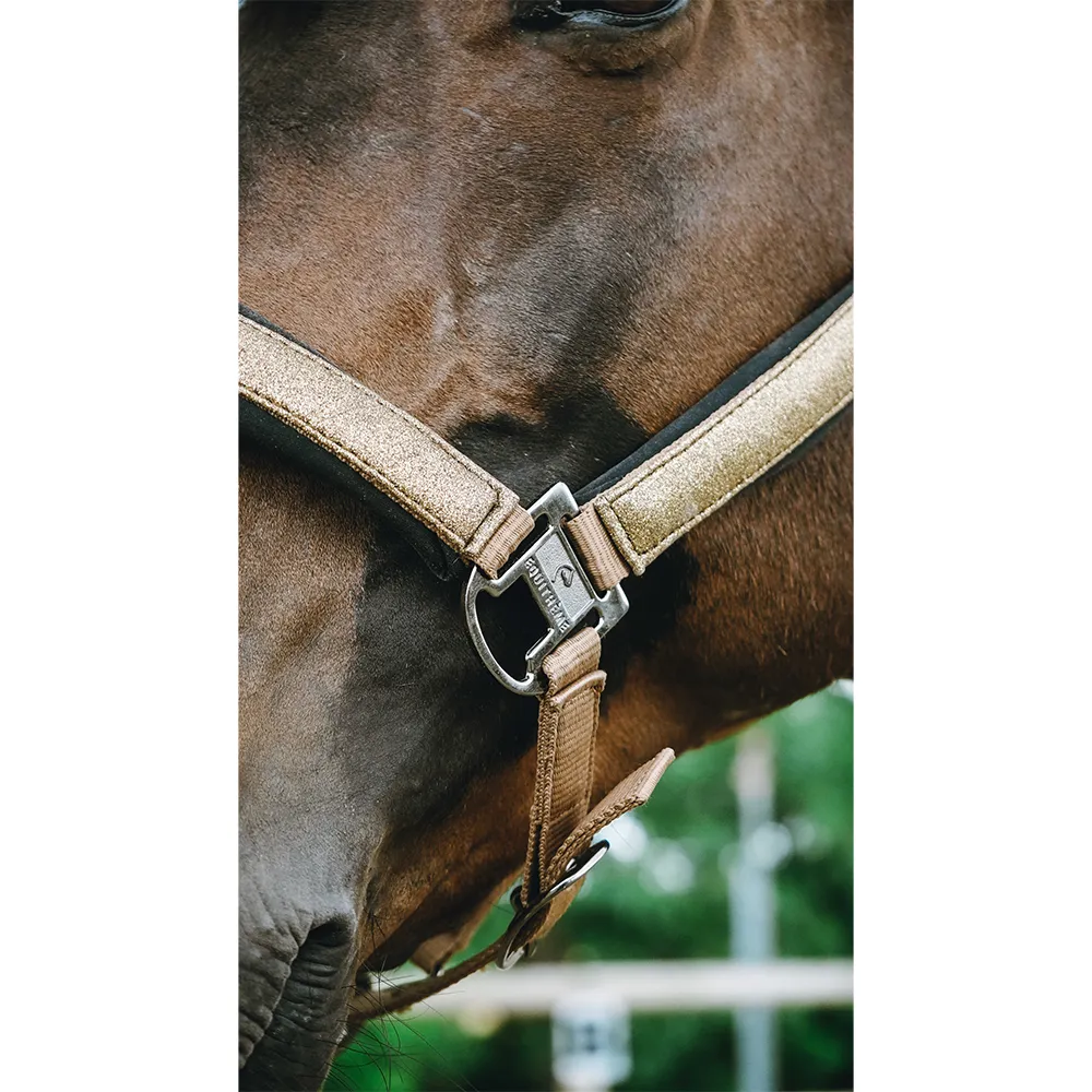 La funzionalità è al centro del design della cavezza Glowy. Un pratico e robusto moschettone a sgancio rapido alla sottogola rende l´operazione di metterla e toglierla facile e veloce—una caratteristica cruciale per le giornate impegnative in scuderia e una gestione efficiente. La ferramenta resistente ed elegante con finitura satinata non solo completa l´aspetto elegante della cavezza, ma è anche costruita per resistere ai rigori dell´uso quotidiano, offrendoti prestazioni affidabili e durature di cui ti puoi fidare.