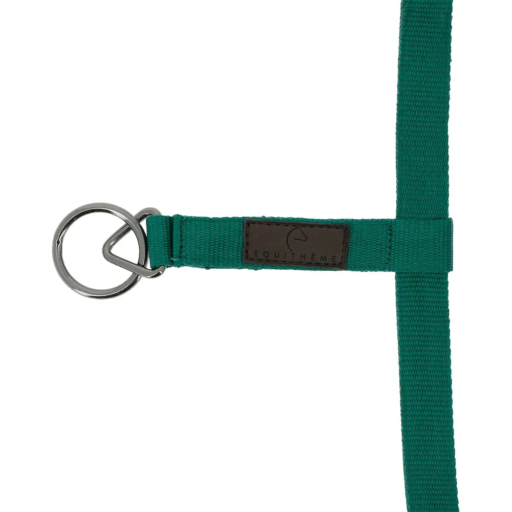 - Donker satijnen hardware ingelegd met het Equithème-logo en musketonhaak.