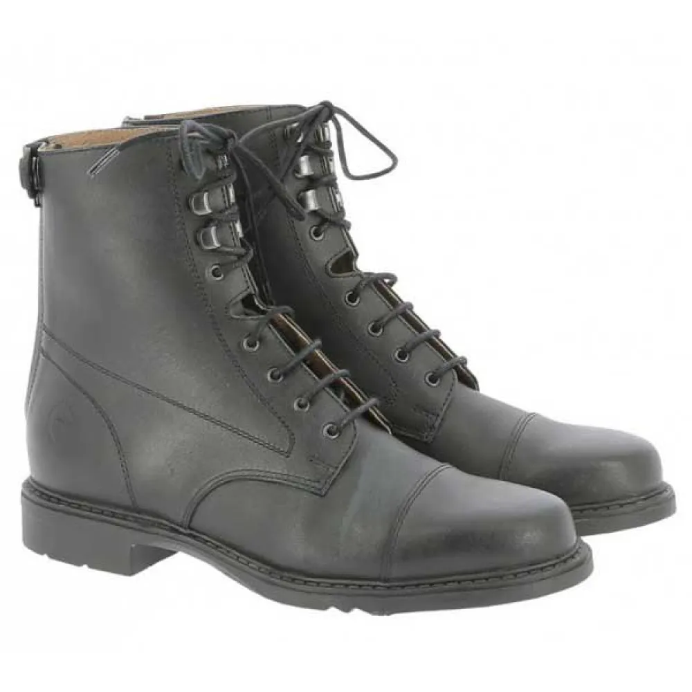 Sluiting: YKK-rits aan de achterkant voor gemakkelijke instap, gecombineerd met veters aan de voorkant en bovenste haken voor een nauwkeurige pasvorm
