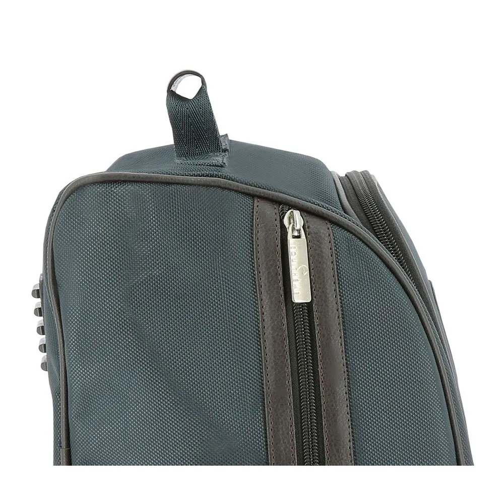 Van waterdicht, 1680D PVC gecoat polyester. Voering van 100% katoen. 2-weg ritssluiting aan de voorkant, zak aan de zijkant. Kunststof handvat voor gemakkelijk dragen. Verstevigingsplaat aan de binnenzijde en beschermnoppen aan de onderzijde.