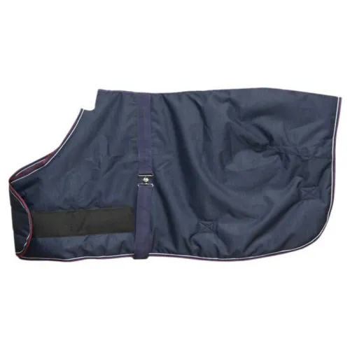 Zeer stevige waterdichte en ademende deken van 1200 denier ripstop polyester met getapete naden. Hygiënische 210 denier polyester voering met 220g polyfill vulling. Schoftkussen van micro polar fleece. Brede zelfklevende borstsluiting voor gemakkelijke veulenbehandeling, lage kruissingel en staartriem.