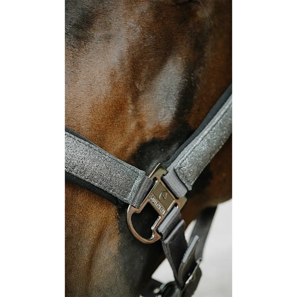 Hev hestens daglige antrekk med den fantastiske EQUITHEME Glowy Nylongrimen, en perfekt kombinasjon av sofistikert stil og eksepsjonell komfort. Designet for den kresne rytteren som mener at hverdagsutstyr skal være både vakkert og funksjonelt, sikrer denne grimen at hesten din ser og føler seg best mulig, enten i stallen, under transport, eller bare når den slippes ut i paddocken. Det er det ultimate valget for å legge til et snev av glamour i hverdagen din uten å ofre det praktiske.