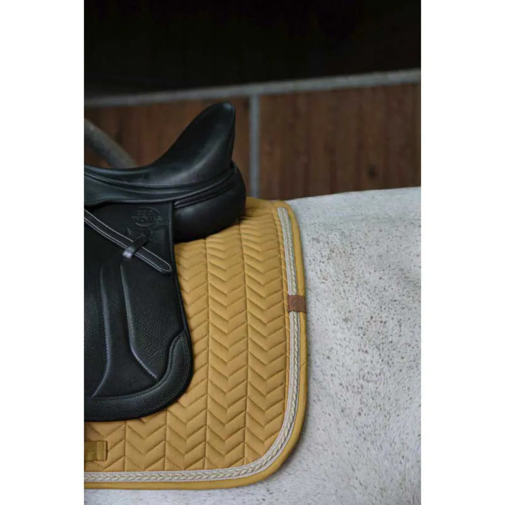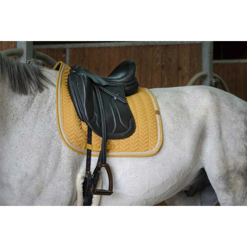 Utover sine ytelsesfordeler, har EQUITHEME Softy salunderlaget også en elegant og sofistikert estetikk. Det elegante designet komplementerer alle ridegrener, fra dressur til sprang til turridning. Underlaget er tilgjengelig i en rekke klassiske og moderne farger for å perfekt matche ditt eksisterende utstyr og din personlige stil. Den subtile, men stilige quiltingen gir et snev av eleganse, samtidig som den forbedrer underlagets generelle funksjonalitet ved å fordele trykket ytterligere og forbedre luftsirkulasjonen.