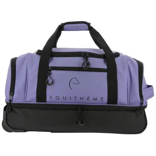 - Acabamentos em zíper lilás na mala, e no lilás com o logotipo Equithème.