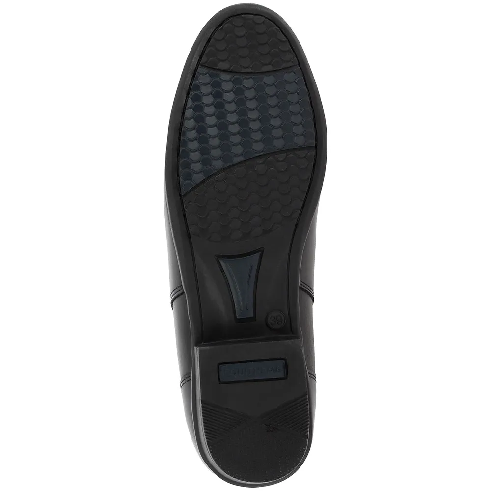 Varje detalj i EQUITHEME Chic-stöveln är ett bevis på kvalitetshantverk. En robust YKK-dragkedja i full längd baktill säkerställer enkel på- och avtagning, medan en skyddande tryckknappslå upptill säkrar dragkedjans dragare och förhindrar att den glider ner, vilket ger en touch av raffinerad detalj. Den eleganta profilen och den överlägsna finishen ger dessa stövlar ett utseende som konkurrerar med betydligt dyrare alternativ, vilket gör dem till ett mångsidigt val för dressyr, banhoppning och vardagsridning.