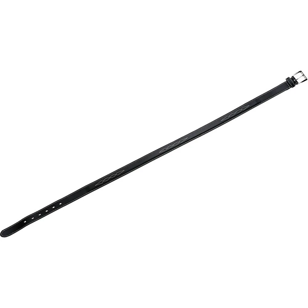 Moderiktigt och diskret, i fyrkantigt upphöjt buffelläder och dekorerad med fina vita sömmar på kanter och i designen. Bredden är anpassad till ridbyxans bälteshällor. Rektangelpolerat spänne med rulle.