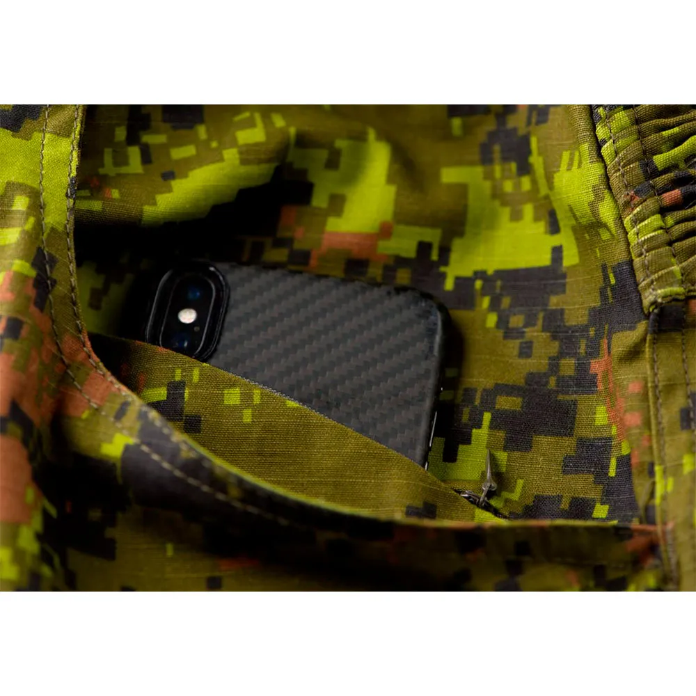 De er lavet af Rip-Stop-stof (65% bomuld / 35% polyester), hvilket gør bukserne lette og holdbare. De er også hurtigtørrende - uanset om det er en varm svedig dag eller regnvejr.