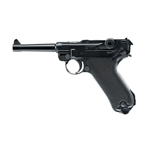 Umarex tilbyder nu P08, en Co2-drevet version af den berømte halvautomatiske pistol til fritidsskydning. Pistolens robuste helmetaldesign, nemme håndtering og høje energi gør den ideel til plinking. Dens aftagelige magasin rummer 21 4.5 mm stål BB´er. Sikringen er placeret nøjagtigt som i originalen.