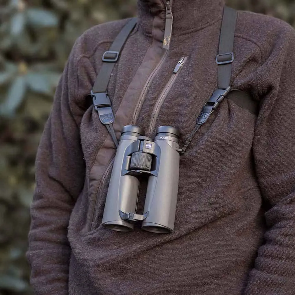 Komfortbærebåndet fra ZEISS sikrer, at din kikkert altid er præcis, hvor du har brug for dem: rundt om halsen og på brystet. Dens specielle funktioner omfatter nem, praktisk fiksering af kikkerten og enestående bærekomfort. Sammenlignet med simple bæreremme giver den nye rem fra ZEISS dig mulighed for at bære din kikkert i total komfort. Den er lavet af materialer af høj kvalitet og føles behagelig på din hud. Den højkvalitets udførelse forhindrer belastning af nakken og fordeler vægten af kikkerten over din overkrop. Kikkerten forbliver stabil og svinger ikke i forskellige retninger, når du bevæger dig. Remmens længde kan justeres for at imødekomme behovet for en bred vifte af applikationer. Kikkerten forbindes ved at føre en strop gennem bøjleøjet. Denne type forbindelse er særlig støjsvag og forhindrer skader på kikkerten. Quick-release fastgørelsesanordninger giver dig mulighed for at fastgøre og afmontere bæreremmen ekstremt hurtigt. For ekstra bekvemmelighed: de ender, der er tilbage på kikkerten, kan forbindes til en rem, så du kan holde kikkerten mere sikkert, også når du ikke bærer den rundt om halsen.