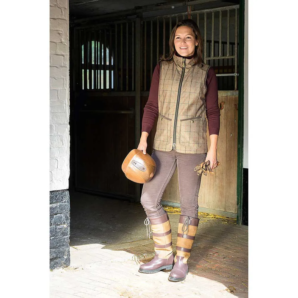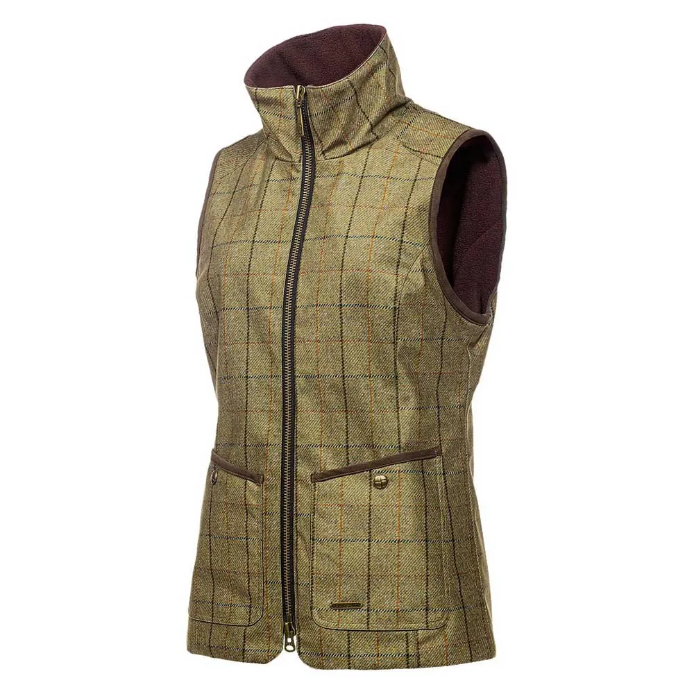 Dieses traditionell gestaltete Stück erhielt eine technische Note und wurde mit einer Prise Kreativität zu einer Weste, die einfach überall getragen werden kann. Unsere Version der Lady Country-Weste ist für zusätzliche Wärme und Komfort mit dunkelbraunem Fleece gefüttert. Es hat einen hohen, eng anliegenden Kragen und ist mit 2 Vordertaschen ausgestattet.