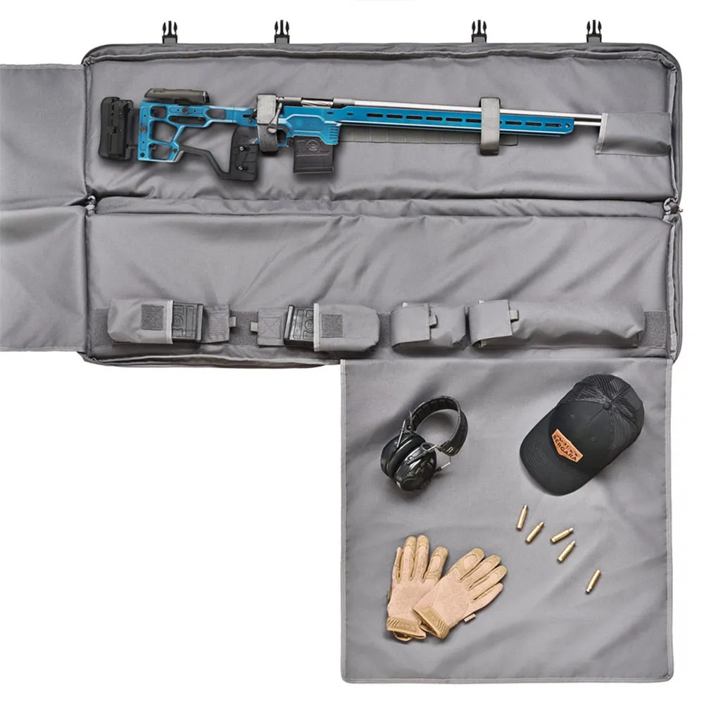 Im Inneren ermöglicht das MOLLE-Befestigungssystem mehrere Positionen der Gurte, wodurch sie für verschiedene Gewehre geeignet ist, mit einer Tasche zum Schutz des Laufs.