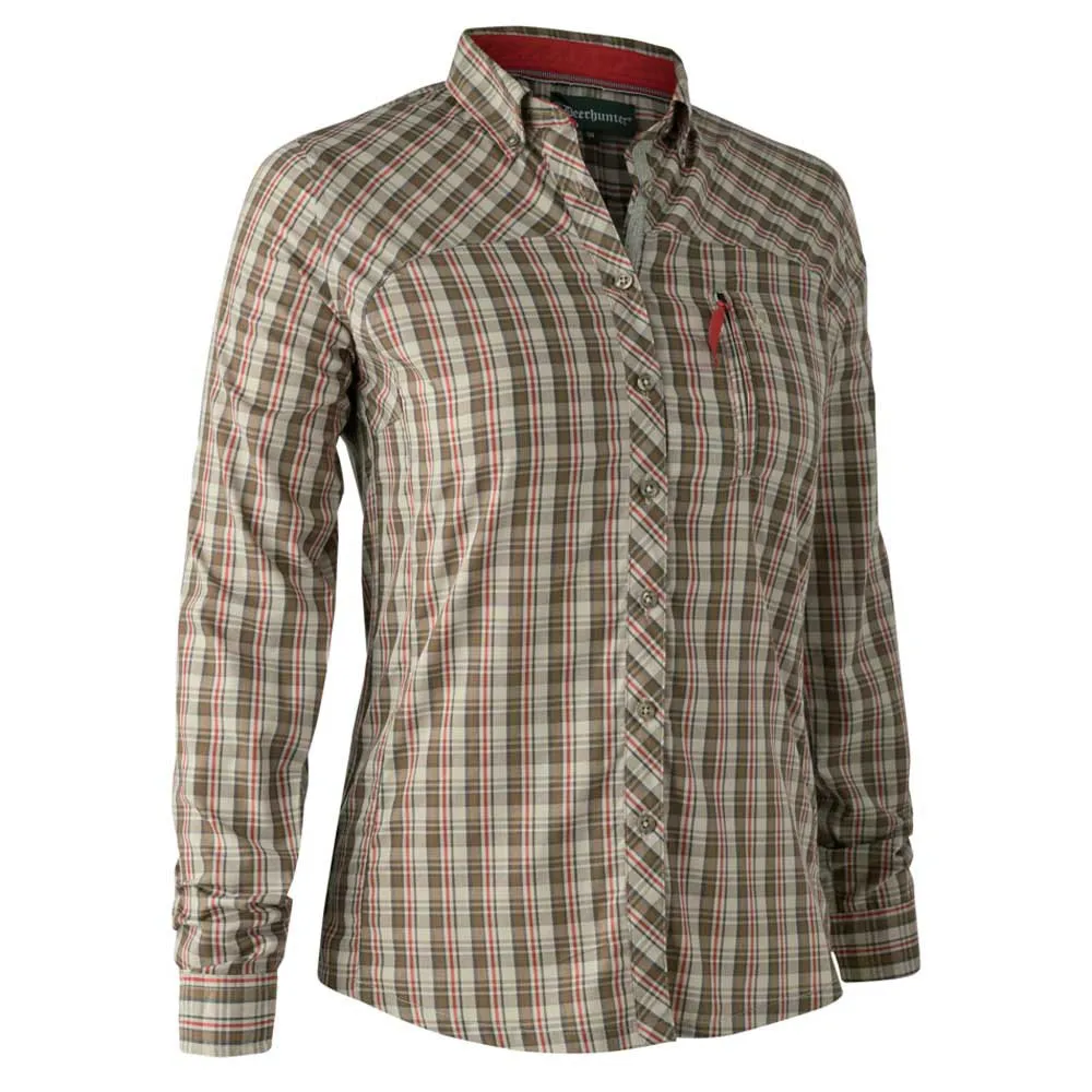 Mit dem Deerhunter Lady Heather Shirt können Sie sich stilvoll entspannen oder im Gelände auftreten. Ideal für einen entspannten Tag auf dem Land oder einen Arbeitstag im Freien. Dieses multifunktionale Hemd hat eine stylische Passform, eine einzelne Tasche mit Reißverschluss, einen Button-Down-Kragen und ist aus einer leichten Baumwollmischung gefertigt, die sich gut anfühlt.