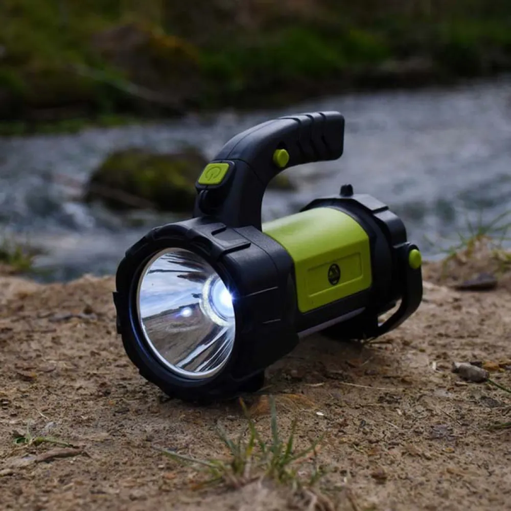 Diese tragbare, leistungsstarke, wiederaufladbare LED-Multifunktions-Suchscheinwerferlaterne ist ideal für Outdoor-Aktivitäten wie Camping, Wandern, Gassigehen mit dem Hund, Angeln, Notfälle zu Hause usw.