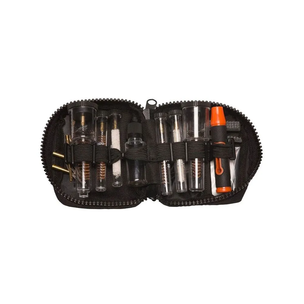 * Components: Includes bore brushes, jags, patches, cleaning rods, chamber brushes, picks, lubricant, and cleaning solvent (Cleaners)