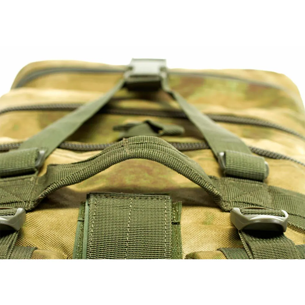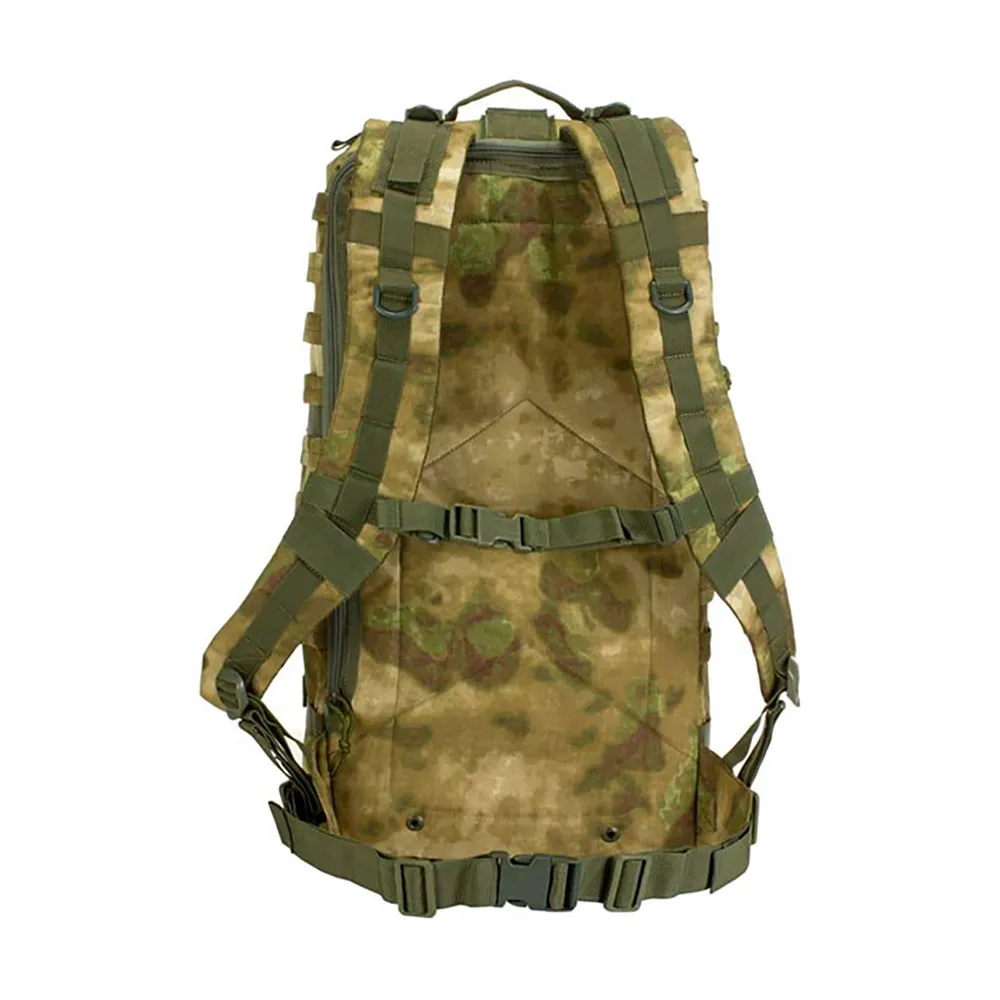 Mod 3 Backpack is a versatile pack with large main compartment, one large & two small additional compartments and one compartment for hydration bladder including outlet for the tube. The total volume is approximately 54 liters, additional pouches (available optionally) can be attached on the MOLLE pals. Both sides are equipped with compression straps. The pack is made from 600 denier polyester which features a good ratio between weight and robustness.