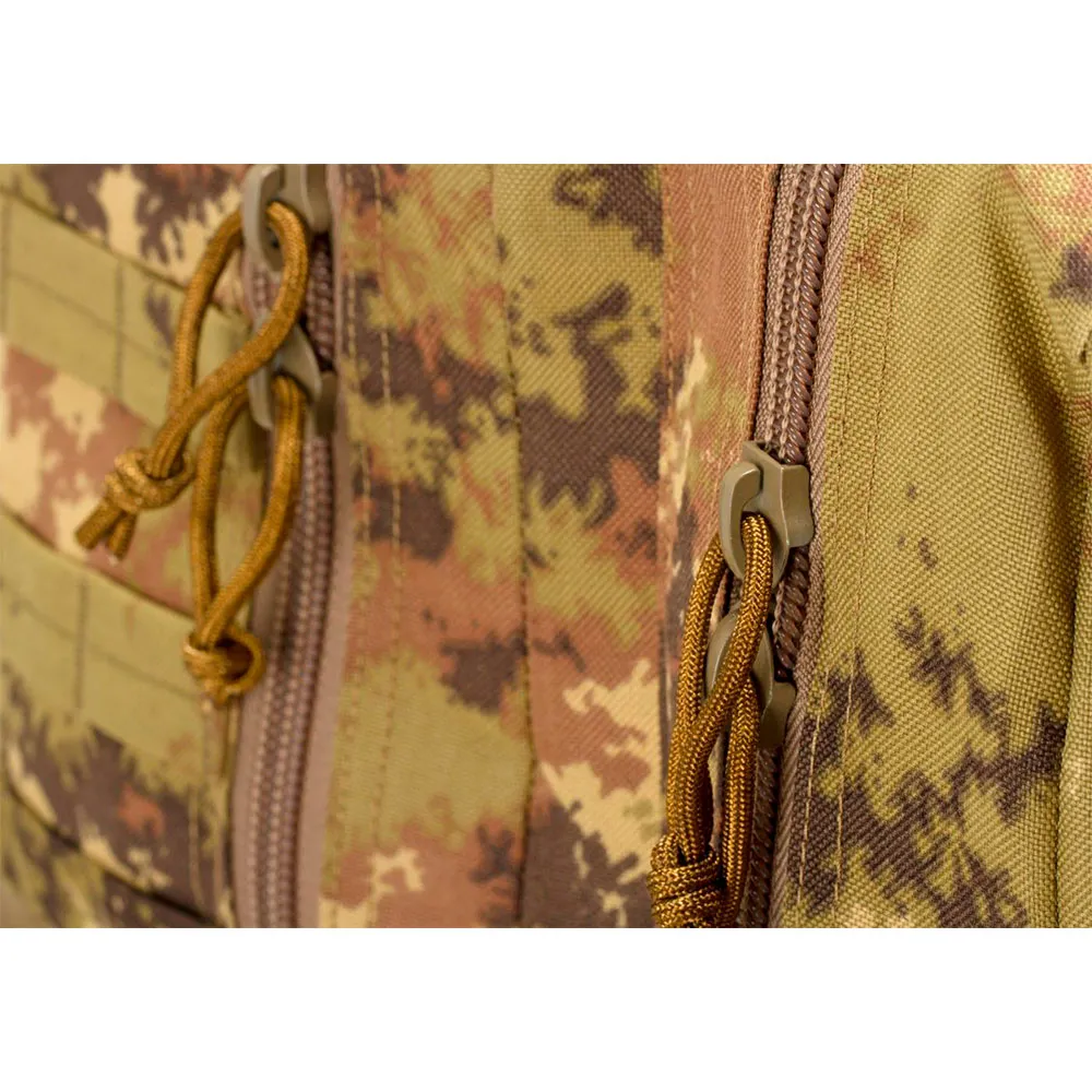 Mod 3 Backpack is a versatile pack with large main compartment, one large & two small additional compartments and one compartment for hydration bladder including outlet for the tube. The total volume is approximately 54 liters, additional pouches (available optionally) can be attached on the MOLLE pals. Both sides are equipped with compression straps. The pack is made from 600 denier polyester which features a good ratio between weight and robustness.