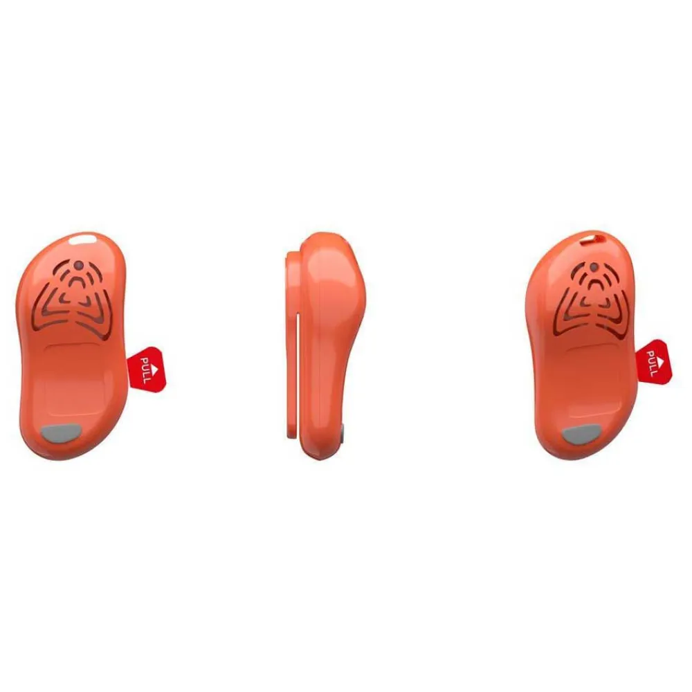 - Remove the tab to activate the device. Press the button to turn the device on or off: 4 short green flashes indicate powering on, while a single long red flash indicates powering off. When switched on, the light will blink once approximately every 5 minutes. After 8 hours of continuous operation, the device will automatically turn off, and should be switched on again before using it once more. Securely fasten the device to your clothing with its easy-on clip, or with a cord running through it. Do not put the device in a pocket or bag, as doing so will obstruct the emitted ultrasonic waves. At normal temperatures, the device can keep ticks away for approximately 3000 hours.