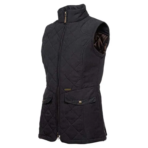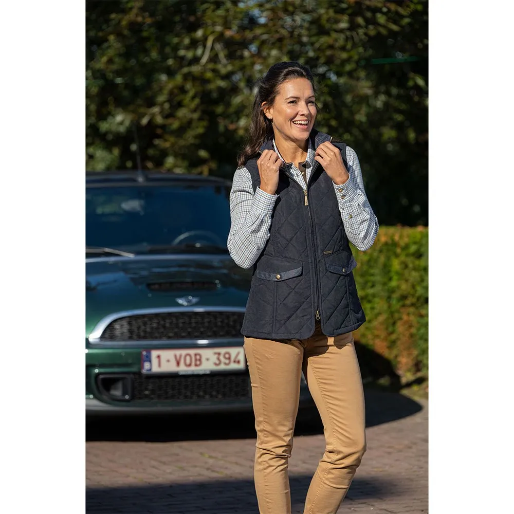 Un chaleco acolchado clásico pero a la moda adornado con detalles de tweed estampados. Cuenta con 2 bolsillos debajo y una cremallera de doble vía. La parte inferior trasera tiene botones de presión que se pueden abrir para mayor comodidad.