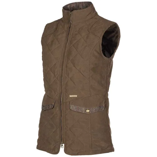 Un chaleco acolchado clásico pero a la moda adornado con detalles de tweed estampados. Cuenta con 2 bolsillos debajo y una cremallera de doble vía. La parte inferior trasera tiene botones de presión que se pueden abrir para mayor comodidad.
