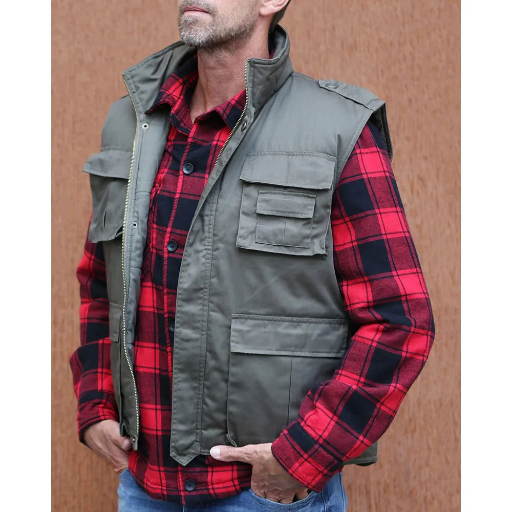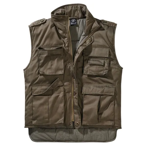 Chaleco de buena calidad, la tela, las cremalleras y el corte son de calidad. El chaleco es confortable, cuello alto pero se puede doblar si quieres. Mientras Brandit mantenga la calidad a buen precio tiene cliente de por vida :)