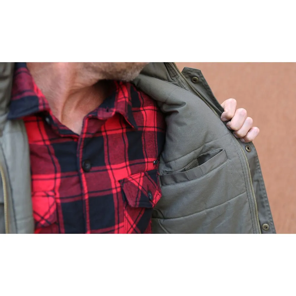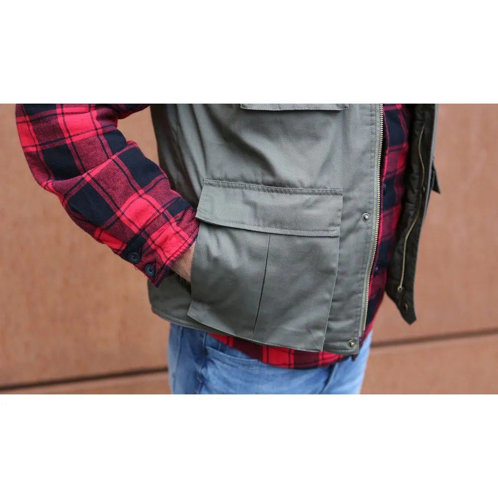 Cómodo, corte recto, 4 grandes bolsillos de parche con solapa y cierre de velcro, bolsillo interior con velcro, charreteras con cierre de botón, cremallera frontal metálica oculta y robusta, cómodo forro de algodón para un buen clima de uso, espalda extendida.