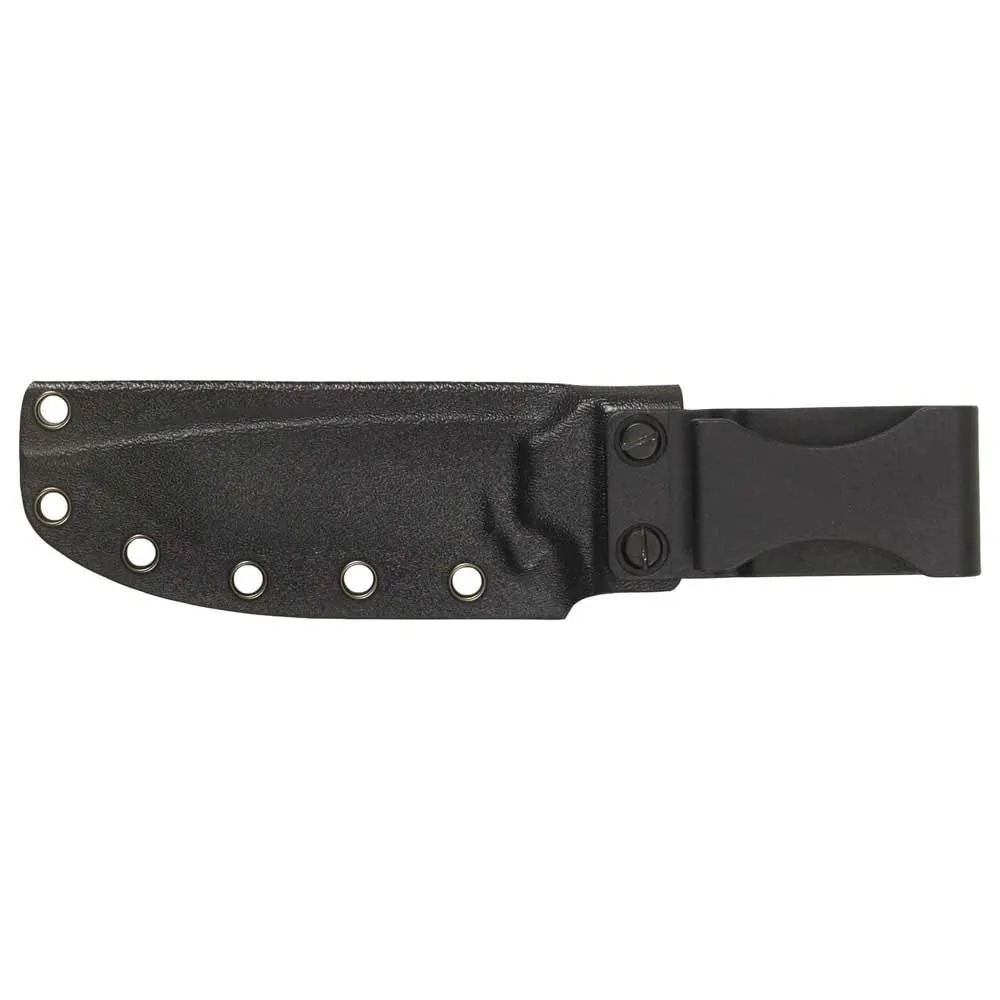 El cuchillo se completa con una funda de Kydex, que se puede sujetar fácilmente al cinturón.