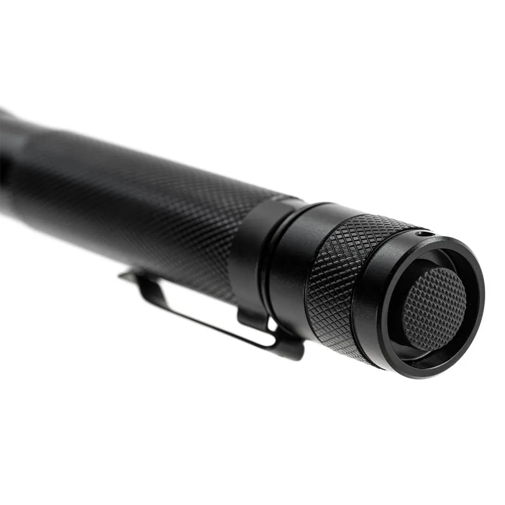 El clip de bolsillo extraíble adicional mantiene la linterna en el bolsillo.