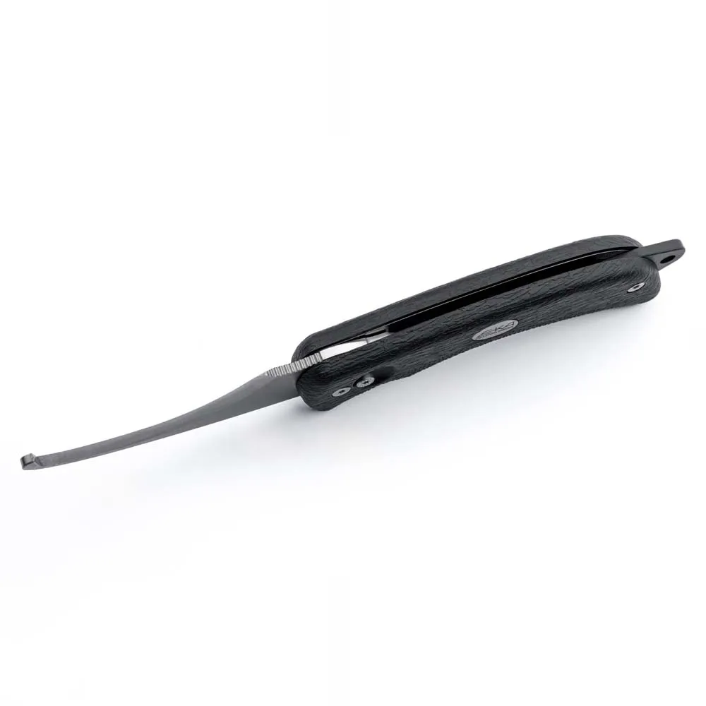 Conçu pour les tâches exigeantes, le G5 possède une lame épaisse et formidable avec un profil de pointe tombante puissant. Cette forme est réputée pour sa force et sa polyvalence, ce qui la rend idéale pour un large éventail d´applications, de la coupe lourde et du traitement du bois au tranchage et au perçage précis. L´épine dorsale substantielle de la lame offre une durabilité exceptionnelle pour les travaux difficiles, vous donnant la confiance nécessaire pour repousser ses limites. Une fois déployée, la lame est sécurisée par un mécanisme de verrouillage arrière éprouvé et exceptionnellement solide, garantissant qu´elle reste fermement en place pendant l´utilisation pour une sécurité et une stabilité sans compromis.