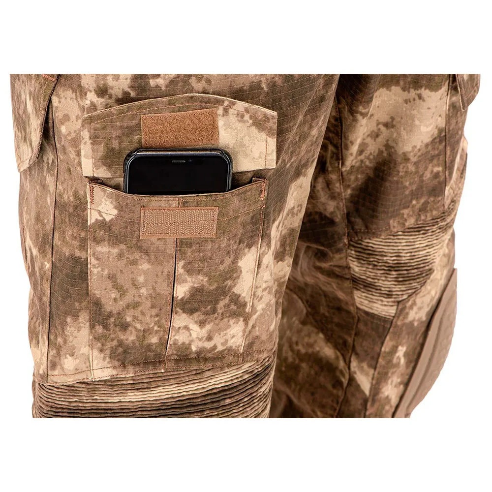 Pantalon de combat robuste. La matière est confortable et douce, et sèche relativement vite. Le tissu des jambes et des soufflets est résistant et robuste. Les coutures sont solides et résistantes.