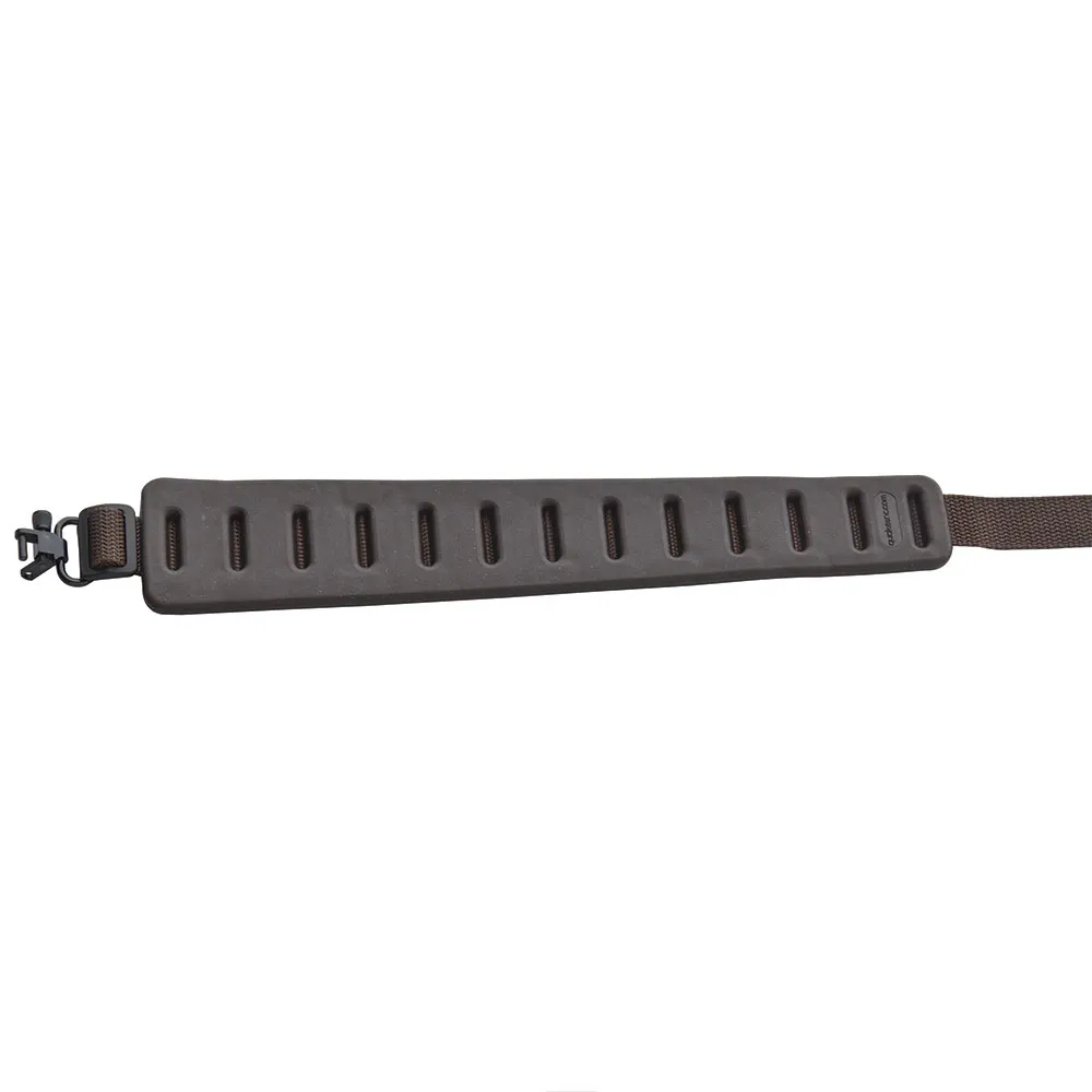 L´action de préhension unique du coussinet antidérapant maintient l´arme à feu en place sur votre épaule, éliminant les tiraillements, les roulements et les tractions causés par les autres sangles sur le marché.